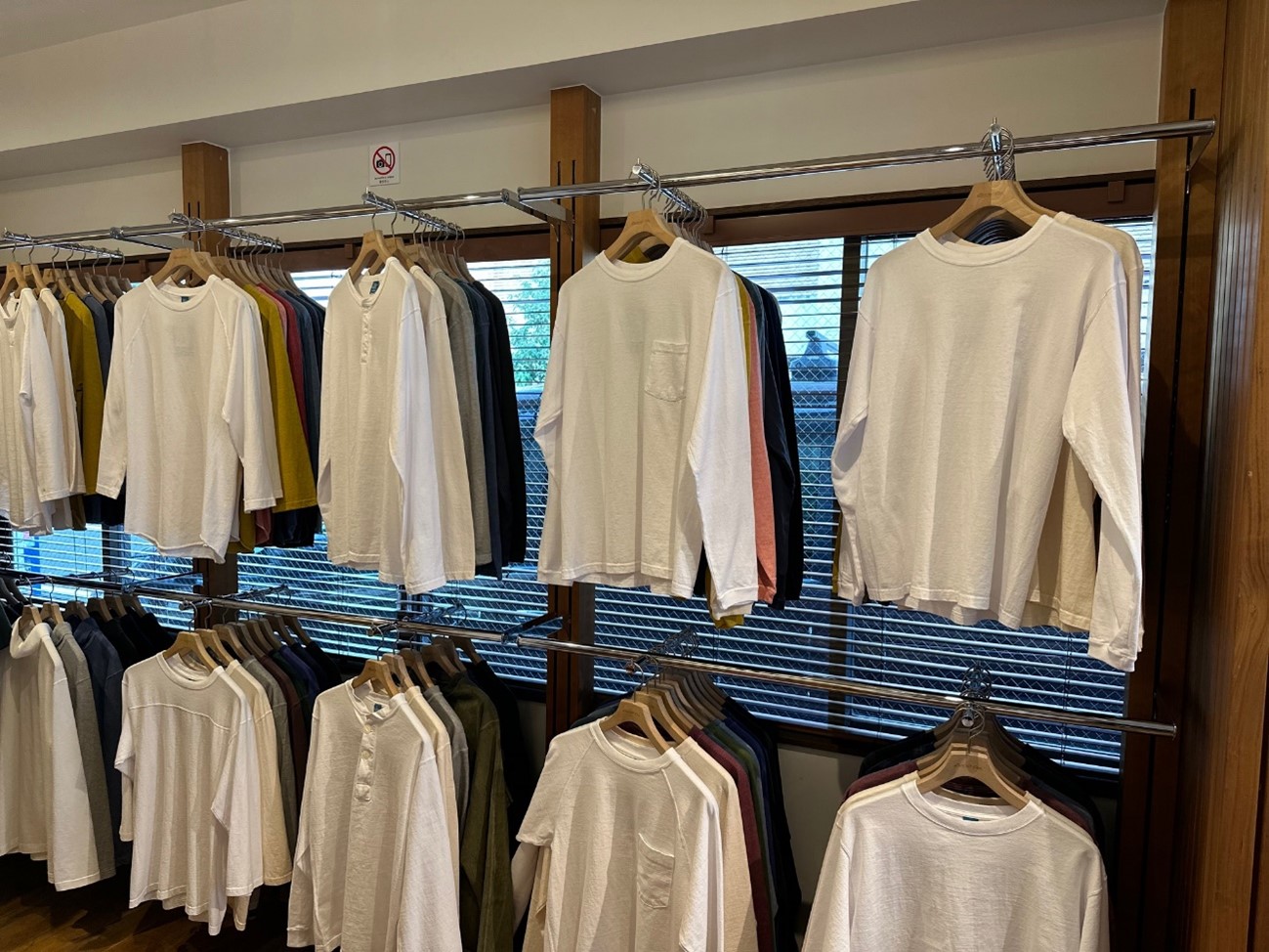 旗艦店の最大の魅力と言えば、ずばりこれでしょう! なんとTシャツがいつでも購入できるのです。しかも圧巻の29色展開。世界中探しても1年中これだけのラインナップを誇るショップはないでしょう。冬でもTシャツを探されていらっしゃる方も多いですし、海外のお客様は必ずTシャツは数枚のTシャツを購入されますので、旗艦店では年間通して1番人気はTシャツなのです。