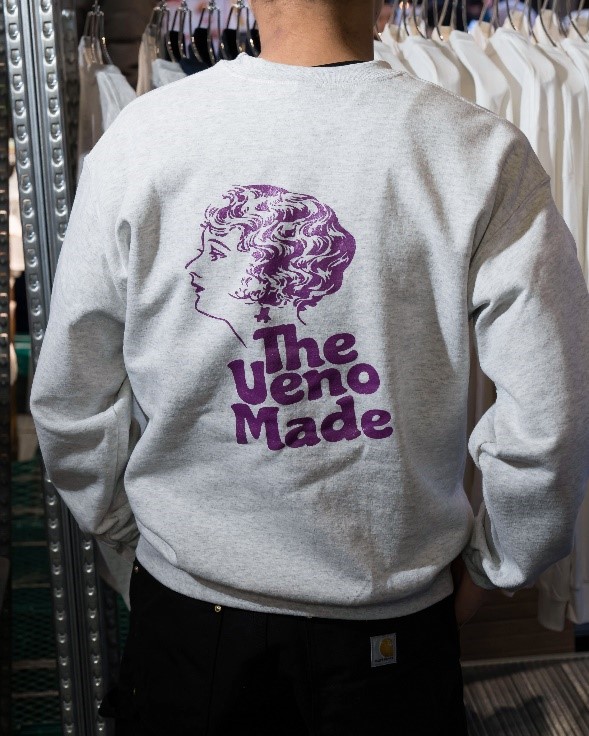 上野をモチーフにしたオリジナルアパレルや、日本産の古着も取り揃えるお店になり、東京上野エリアのライフスタイルにインスパイアを受けたスーベニアグッズブランド“UENO LEISURE CLUB”のフラッグショップとなります。