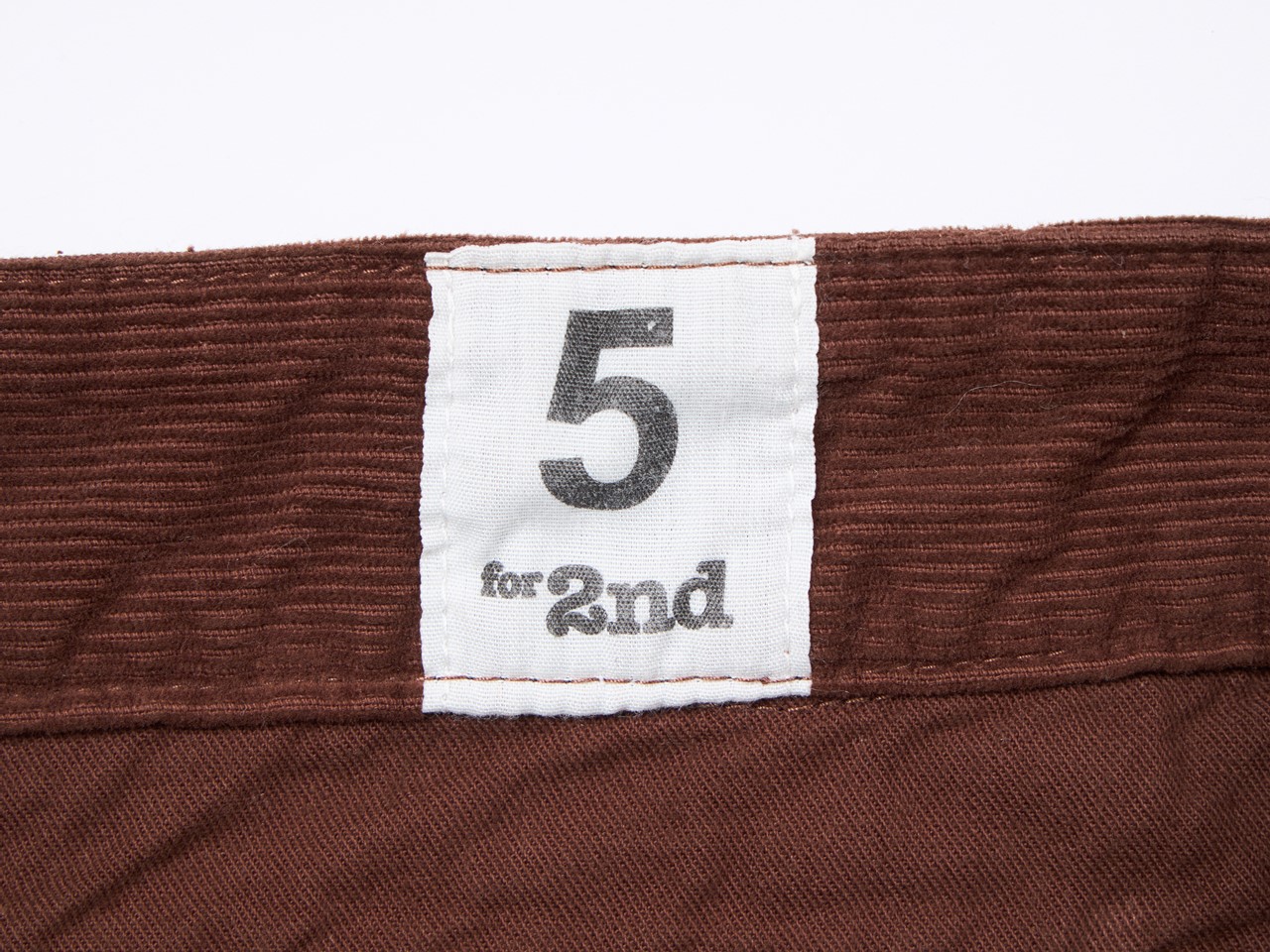 1950〜60年代にかけてフランス軍に採用されたM-52 チノショーツのサイズタグを再現し、1桁の数字のサイズが記された生地が左腰部分に縫い付けた。オリジナルは数字のみの表記だが、別注の印として「for 2nd」の文字も記している。