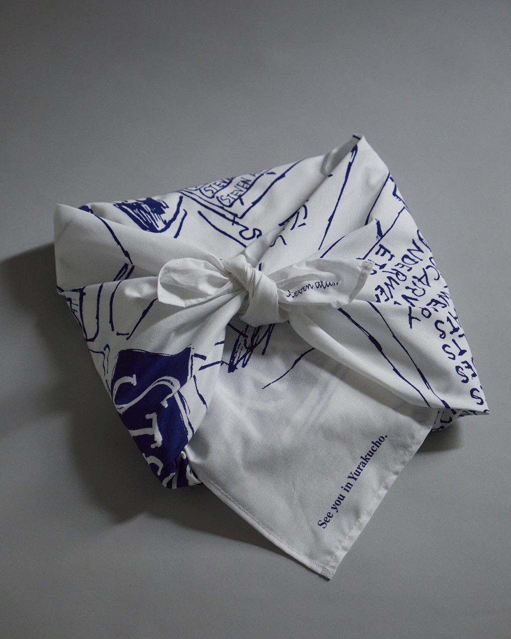 また、11,000円(税込)以上購入の方には、米国のイラストレーター・漫画家であるシドニー・ハリス氏が描き下ろしたイラストをプリントした風呂敷をノベルティとしてプレゼント(数量限定・なくなり次第終了)。ショッピングバッグの代わりとしての活用や、風呂敷のさまざまな使い方も提案する。
