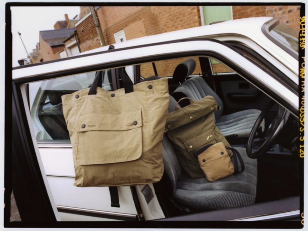 今回、新に展開するバッグコレクション“トランスポートバッグ”は、ドライコットンと呼ばれるパラフィン(蝋引き)加工のコットンを使用。ノンワックスながらも使い込むうちにエイジングが楽しめる、バブアーらしい素材使いが特徴となっている。日常使いしやすいサコッシュバッグや、通学通勤にも便利なマルチトートなど幅広く展開する。