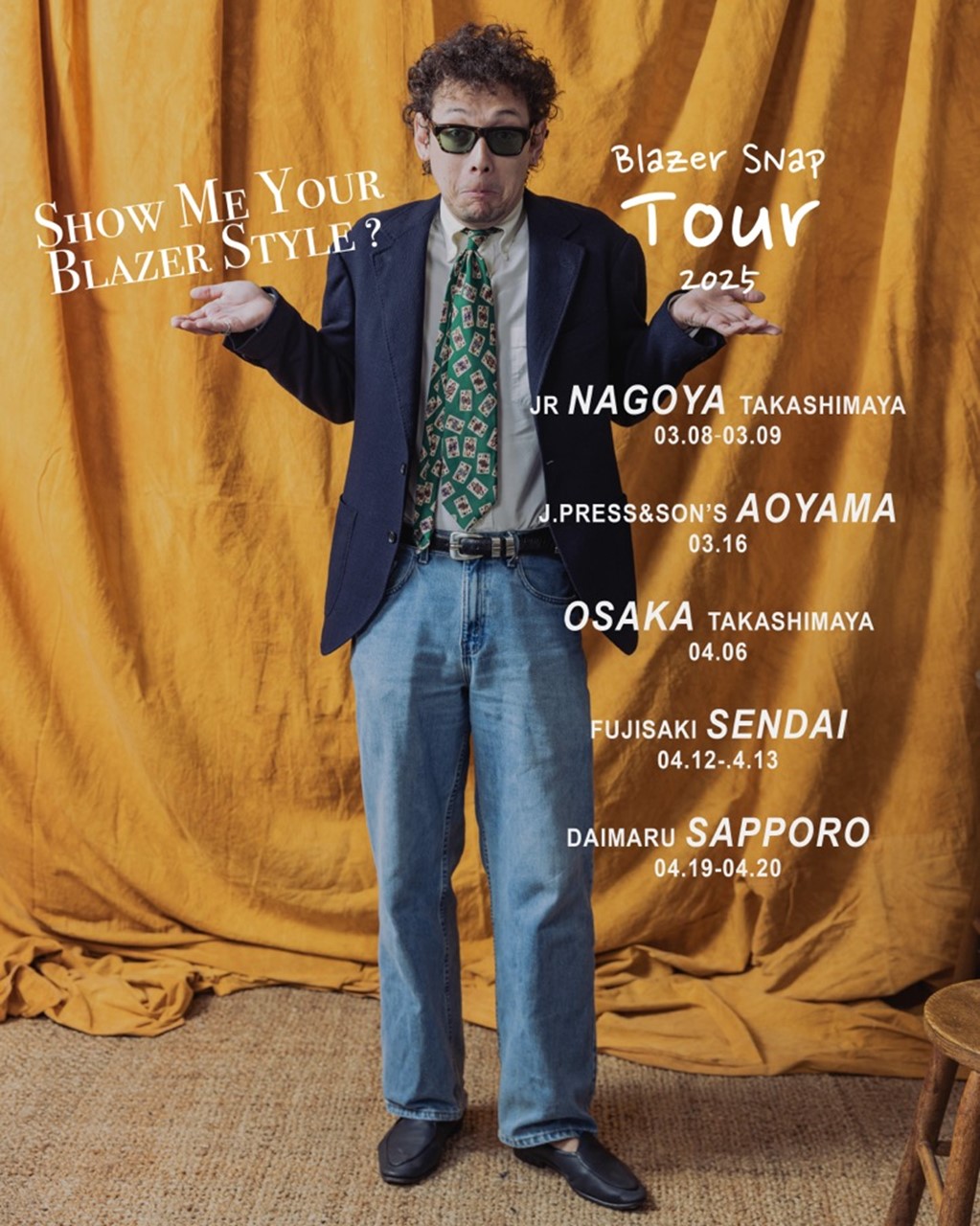 “Blazer Snap Tour2025”は、「Blazer Snap」と称し、参加者が自身のブレザーを自由にスタイリングし、その姿を各イベント店舗にて撮影し、Instagramの公式アカウントに投稿するというイベントである。アメリカン・トラディショナルの魅力を、全員参加型の形式で広めることを目的としている。3月8日(土)~9日(日)、JR名古屋タカシマヤ『J.PRESS』ショップを皮切りに全国5か所で開催予定だ。