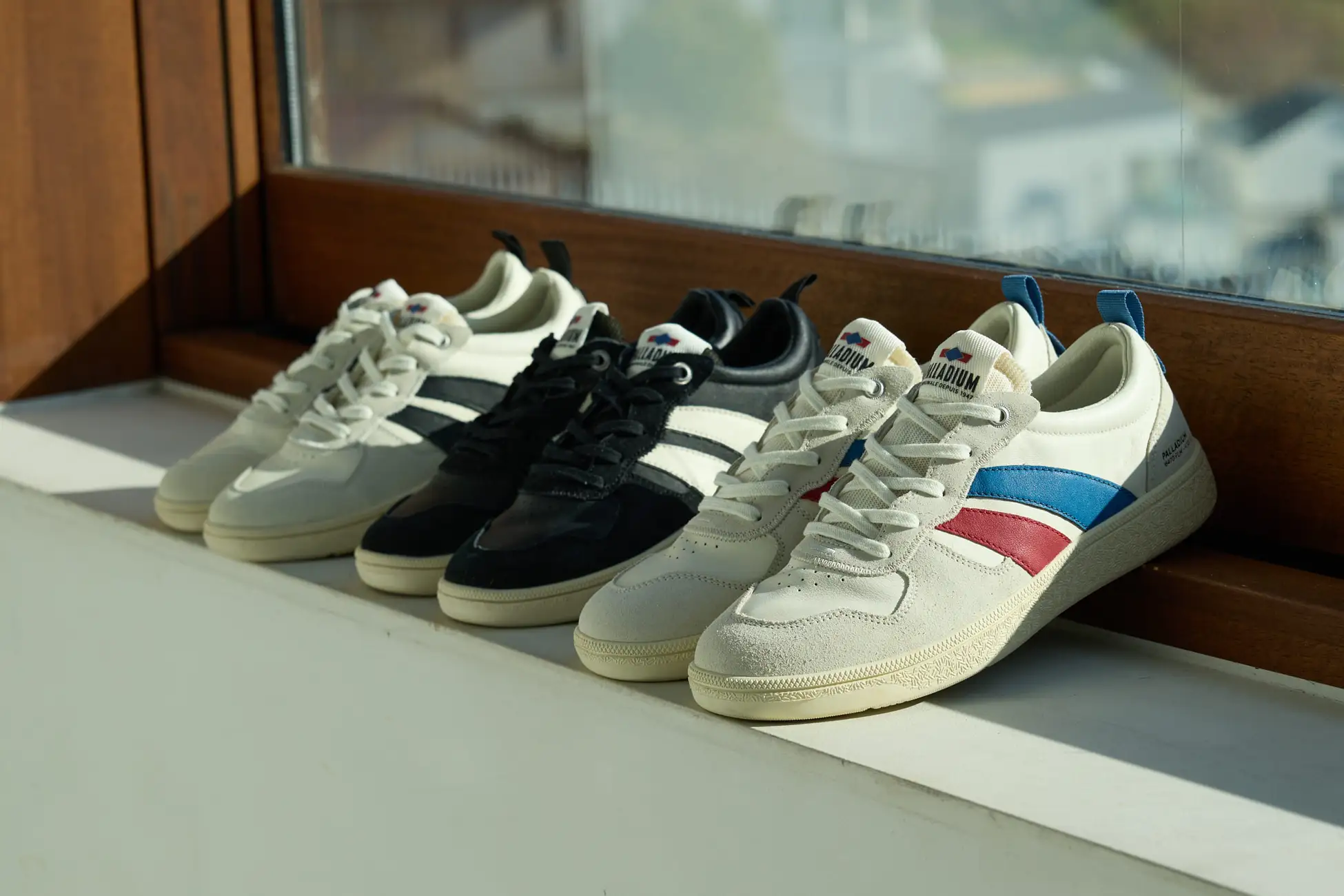 「Pallacup Flame LTH(パラカップ フレイム レザー)」は、スポーツとライフスタイルにおける「パラディウム」の伝統からインスピレーションを得たモデルで、炎(Flame)を現すアッパーデザインが特徴。素材は高級レザーとスエードのコンビネーションで、ビンテージブランドとしての「パラディウム」の記憶を呼び起こしてくれる。