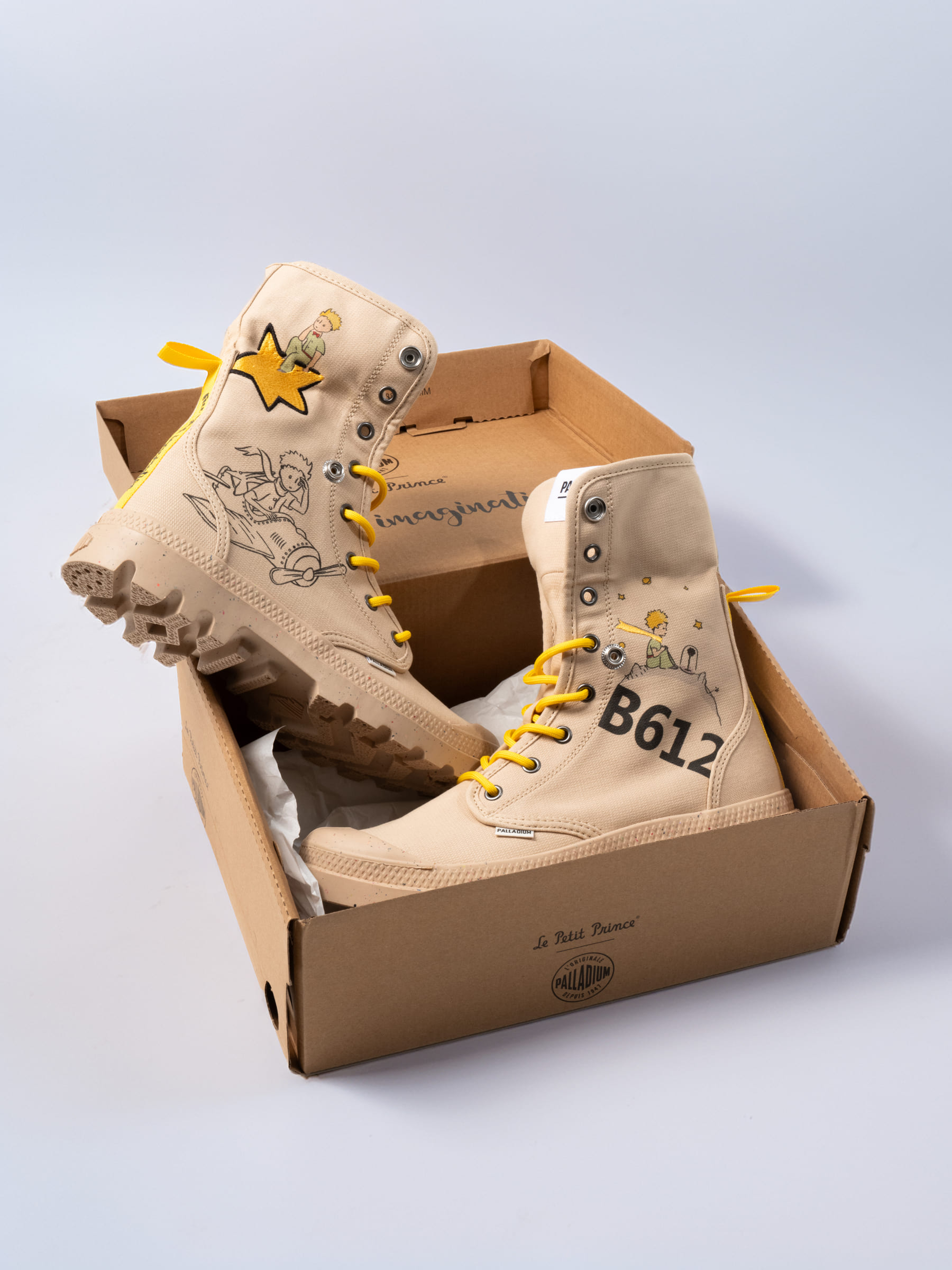 「パラディウム」は、1920年代に航空機専用のタイヤメーカーとして創業。ブーツをつくる前から、探求と冒険へのコミットメントを体現していた。同様に、サン=テグジュペリの飛行士としての経験から生まれた『Le Petit Prince』は、世界を旅し、自らを探求することの本質を描き、人生や愛について深い考察が世代を超えて人々の心をとらえている。