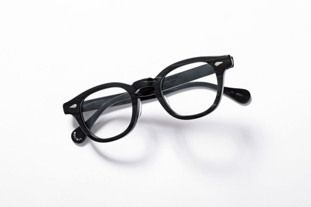 セルフレームの「セル」とは簡単にいえば樹脂素材を指し、布と同じく「生地」と呼ぶんですが、これを長期にわたって寝かせることによってこのエボニーのような深みのあるブラックを生み出したそうです。レンズ幅&ブリッジ幅が3種類から選べるところも憎い。いやー、メガネは奥深い。