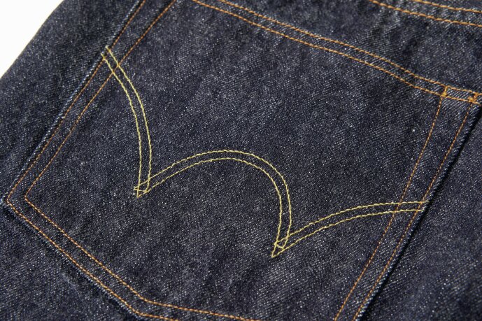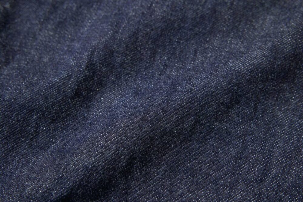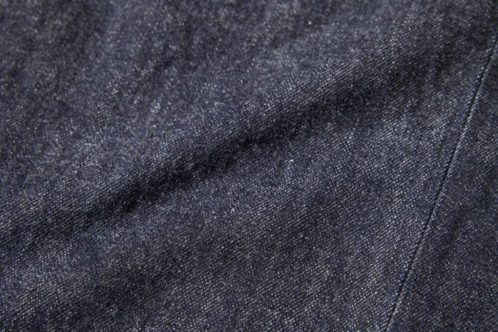 クリーンな表情を実現するため、織り上がった生地を縮めて安定させるサンフォライズ加工と毛焼きを施し表面をフラットに。ピュアインディゴを100%採用しているため、経年変化も楽しめる。