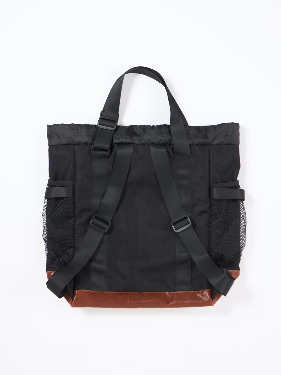 機能面は現代的で、トートバッグとしてもバックパックとしても使える2ウェイ仕様を採用。前面、両サイドにはメッシュポケットなどの便利なディテールを搭載。カラーは洗練された印象のブラックを選択し、クラシックアウトドアから正統派アイビーまで幅広いスタイルに対応する汎用性抜群のバッグに仕上がっている。