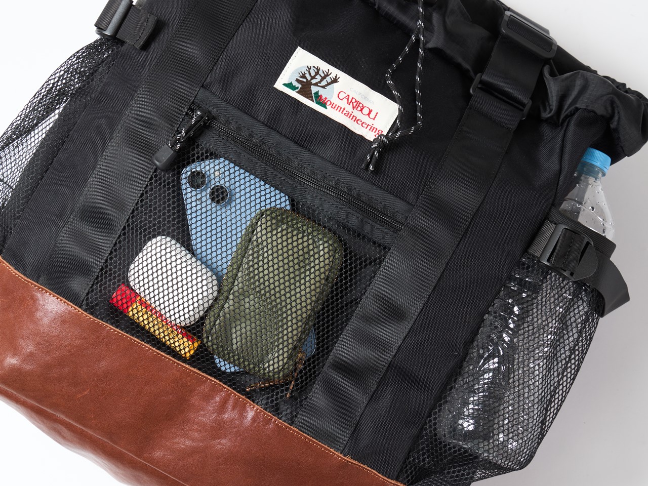 前面、両サイドにはメッシュポケットなどの便利なディテールを搭載。ワイヤレスイヤホンやスマートフォンなどの小物は前面に、ペットボトルや折り畳み傘などはサイドポケットに収納でき、ダイレクトにアクセス可能。