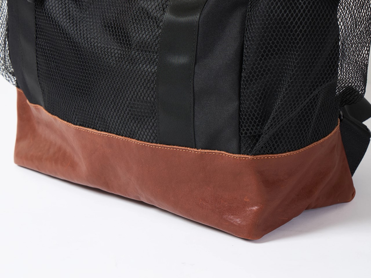 まず、従来のリップストップポリエステルから、より地厚なポリエステル生地へ変更。そして最大のポイントは、ボトム部分をレザーにすることで、ヴィンテージのバックパックのようなクラシックなルックスを再現した。