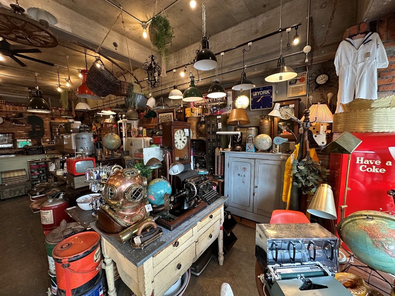ショップには古い椅子や時計をはじめ、様々なアンティークが所狭しとセンス良く並んでいる。その物量には圧倒される。なかにはオーナー自身ですら使い道が分からないものまで並んでいることもあります。これらはすべて、オーナーである松下氏がアメリカから仕入れてきたものだそうです。ライトやテレビなど古くて使えないものは、日本の専門業者にリペアを依頼し、再び使える状態にしてから店頭に並べているそうです。