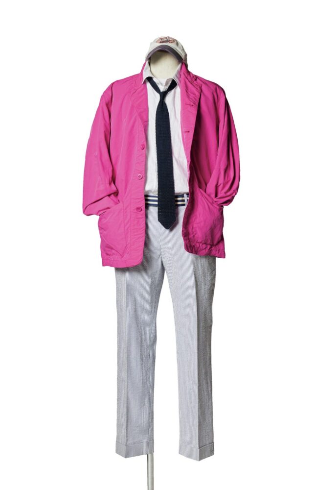 カバーオール4万1800円、リネンシャツ2万2000円、シアサッカーパンツ2万2000円、ニットタイ1万4300円(すべてD.C.ホワイト)、キャップ、ベルト(ともに石原さん私物)