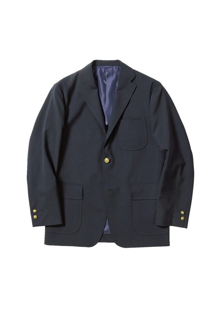 今季の目玉である「ライトウェイトコインベントブレザー」。最大の特徴は、ベント部分に小さく空いた穴にコインを入れることで、それが重りとなり返りや反りを軽減させるという“コインベント”なる仕様。アンコン仕立てで軽量なジャケットだからこそ、重宝しそうなディテールだ。なによりこのユーモアがたまらない。上5万9400円、下6万1600円