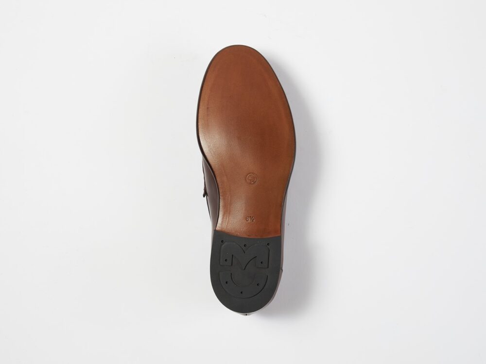 アッパーには、新喜皮革に別注したオリジナルカラーのシンコードバンを採用。靴用に開発された、非常に滑らかで表情の個体差も少ない上質なコードバンは履き込むごとに唯一無二のエイジングを楽しむことができます。カラーはレギュラーカラーにはない、「ダークオーク」を別注色として製作してもらいました。ダークブラウンとも違う独特の奥行きのある色味に仕上がりとなっています。