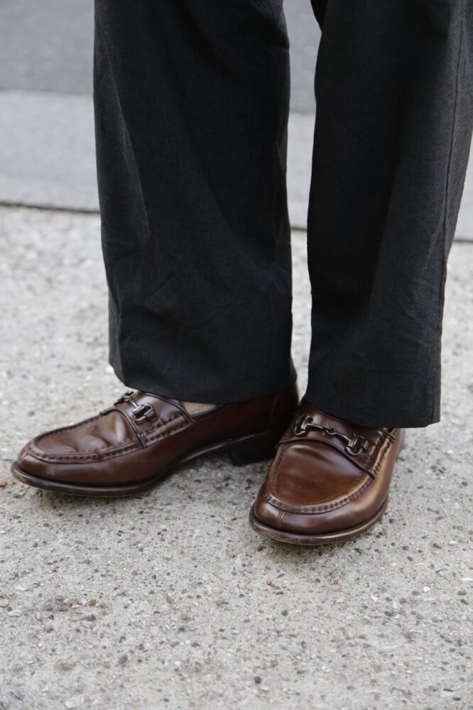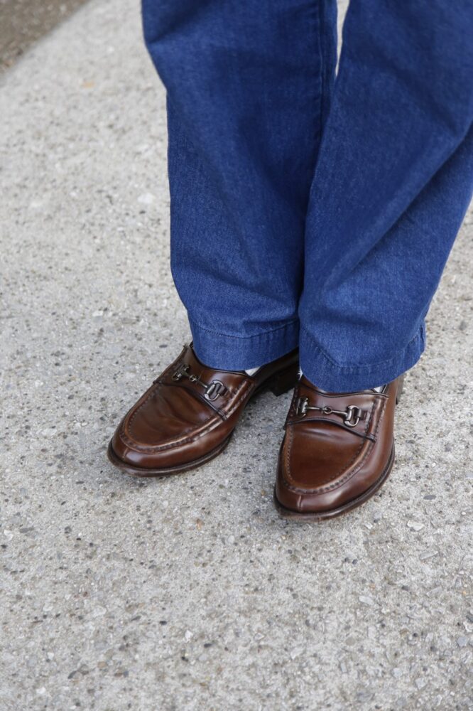 「ペニーローファーやタッセルローファーは持っていましたが、ビットローファーは持っていなくて欲しかったんです。小ぶりなブットは主張が強すぎず、合わせやすいのも嬉しいポイント。とにかくこのオリジナルカラーのシンコードバンの経年変化が楽しみです!」