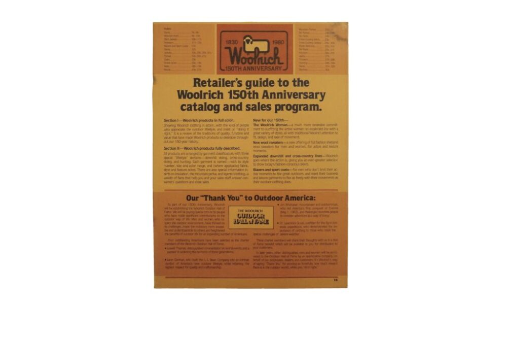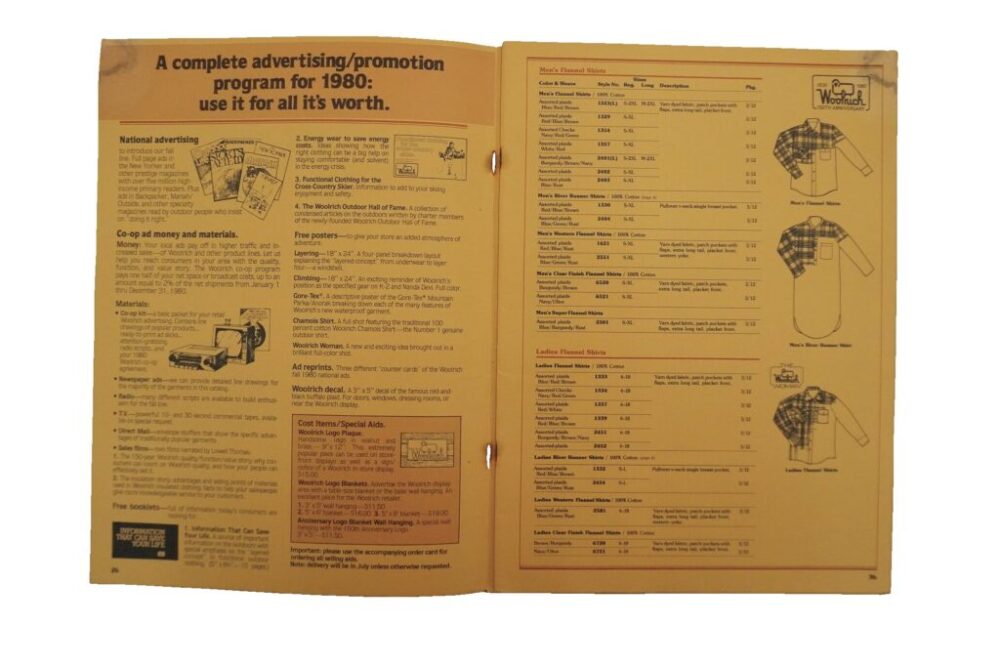 1980年に発行された150周年記念のカタログと小売店向けの販売プログラム。古着市場でもかなりの種類と量のアイテムが見つかるのだが、その理由はカタログを見れば一目瞭然。メンズ向けのフランネルシャツだけで14種類、ウィメンズが12種類と他のブランドに比べてもアイテム数が多い。この1ページだけでもその巨大さが垣間見える。