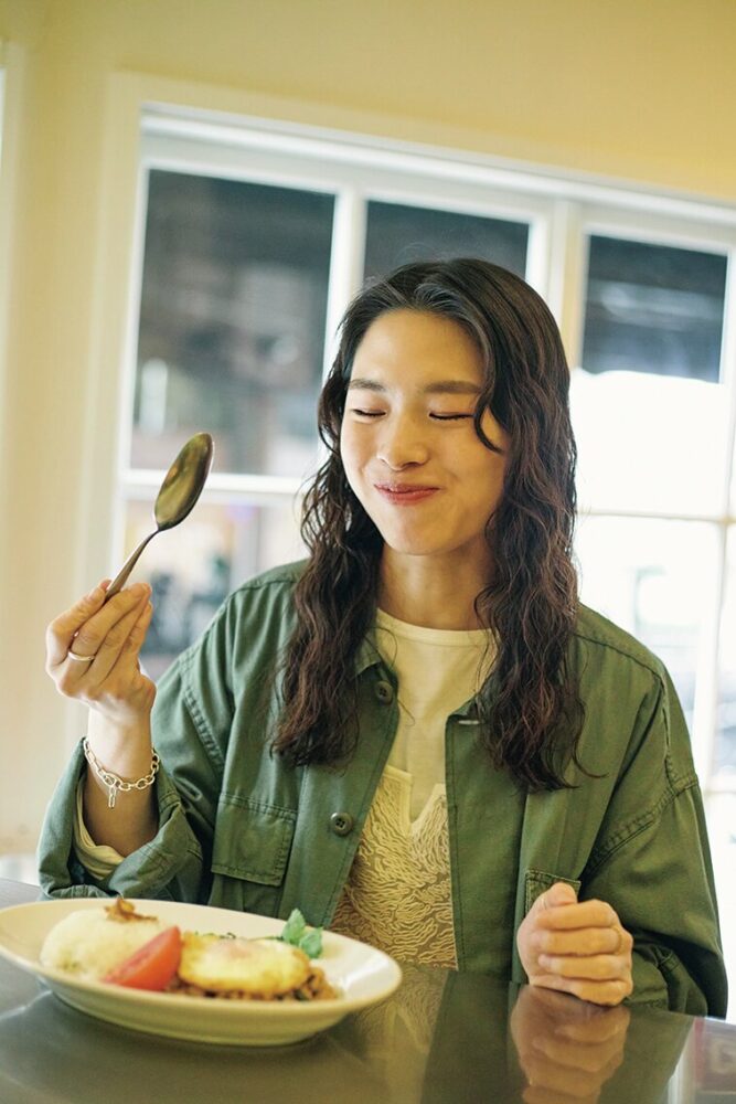 「大学時代は代々木上原周辺で遊ぶことが多く、実はこのカフェにも1度来たことがあったのですが、改めていい場所だなと思いました。ファイヤーキングの食器も可愛かった! こういう落ち着いたデートはポイント高めです!」