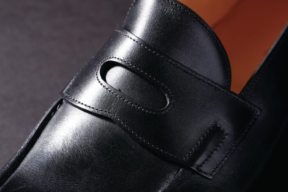 [ロペス]の最大の特徴は、このオーバル形(楕円形)のサドルデザインだ。サドルの切れ込みは一文字や三角形などの直線的なカッティングが施されるのが一般的だが、この丸みのあるデザインは柔らかなムードを演出してくれる。この切れ込みのデザインやサドルの細やかなステッチも、熟練の職人によるクラフトマンシップの賜物だ。このアイコニックなデザインは、「ジョンロブ」のシグネチャーモチーフとして他のモデルにも使用されているのだとか。