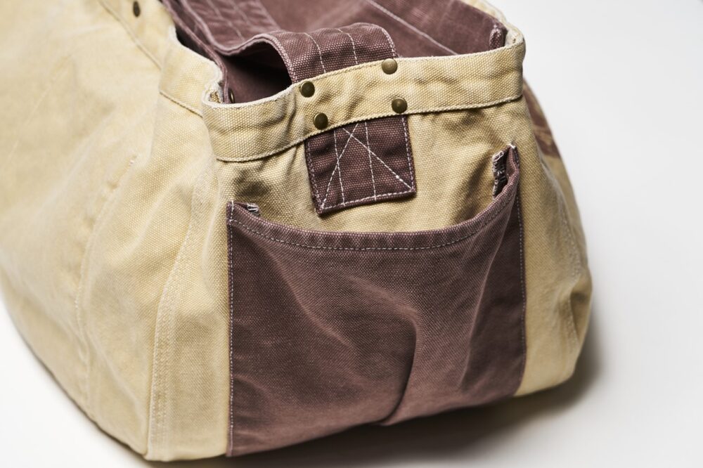 本来、ニュースペーパーバッグは新聞配達時に使用されていたもので、どんな新聞を配達しているのか、その名前を宣伝する意味も込めて、バッグには文字が入ることが一般的でした。ヴィンテージで見られる個体のほとんどは、新聞社名や会社名を刻んだデザインが特徴です。
