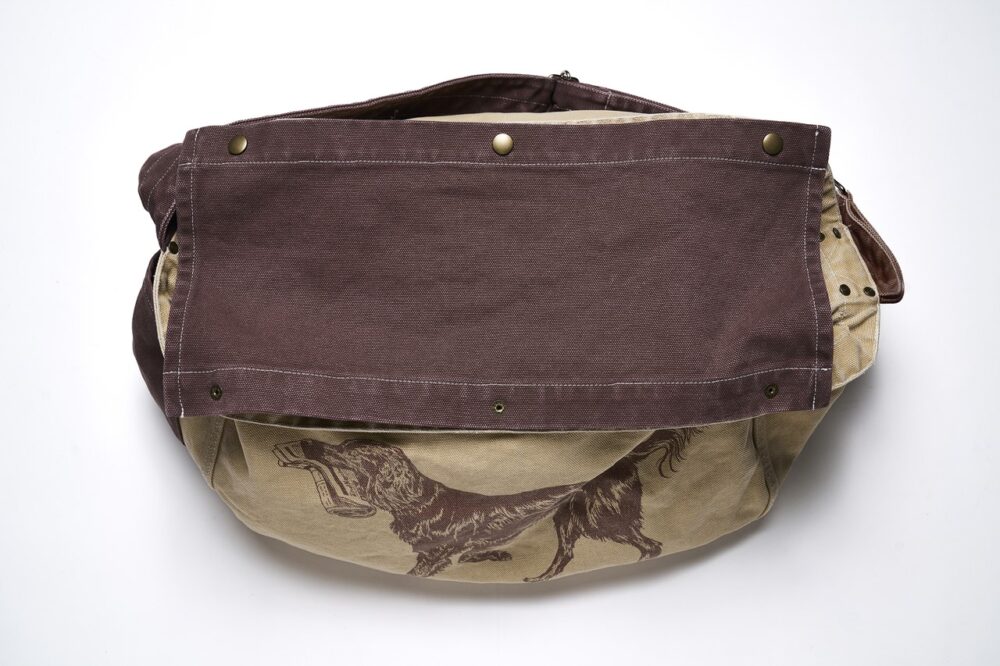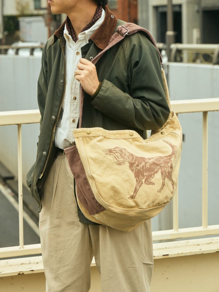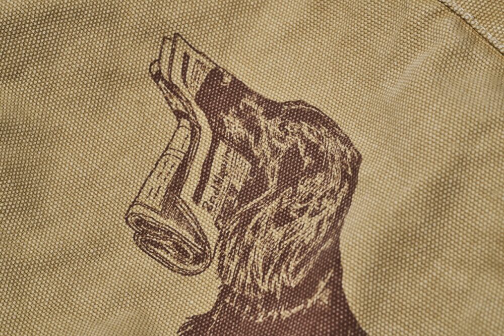 イラストには、新聞をくわえたアイリッシュセッターが描かれています。この犬種はアメカジ界でお馴染みの「レッドウイング」のタグにも登場しており、ファッションとも密接に関わりがあります。毛並み1本1本が再現された精密なイラストに加え、新聞には「2nd Magazine」の文字が描かれており、細部にまでこだわり抜かれたプリントが魅力です。