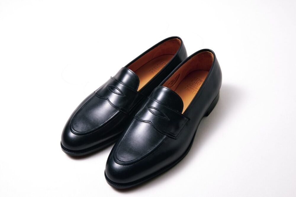 不朽の名作ペニーローファー[ボストン]を下敷きに、より日本人の足型にフィットしやすい「376」ラストを採用した[ボストン2]。 ヒールカップが小ぶりで、踵が抜けにくい。他にもハーフムーンと呼ばれる小さめのスリットやショートなヴァンプなど、英国靴ながら随所にアメリカンなテイストがみられる(グリフィンインターナショナルTEL03-5754-3561)