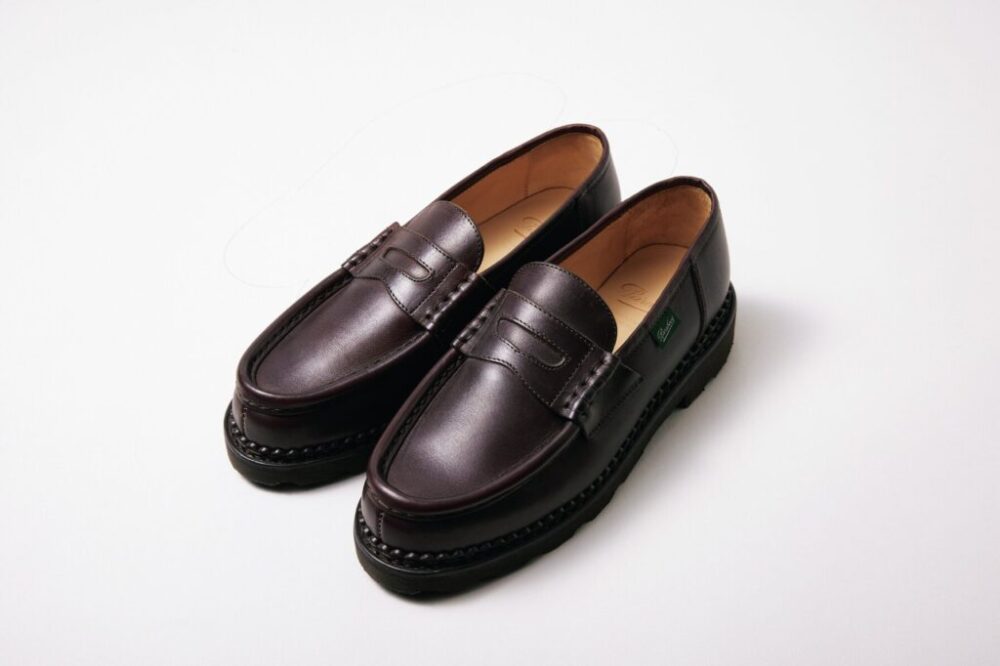 同社の定番チロリアンシューズ[ミカエル]を、ビーフロール仕様のペニーローファーにアレンジした[ランス]。各部の仕様もミカエルに準じており、堅牢なノルヴェイジャン製法、耐水性の高い重厚な被せモカ、自社生産のラギッドなラバーソールなど、フレンチの粋とヘビーデューティさとが巧みに同居(パラブーツ青山店TEL03-5766-6688)