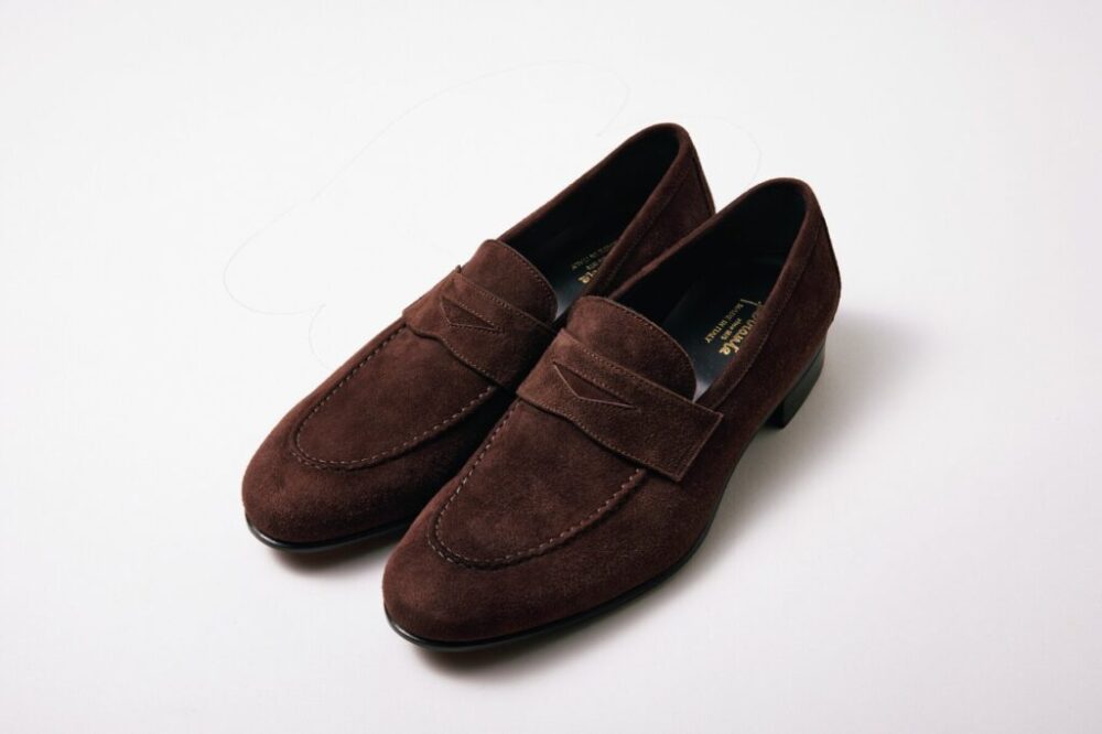 イタリア北部のドロミテ山塊を臨むシューファクトリーが、アメリカンなペニーローファーをデザイン。米国的な丸みを帯びたトゥに、低く立ち上がった甲のライン、モカ部分に対して立ち上がったサイドウォールなど、これぞトラッドそのもの。9分仕立てのハンドソーンウェルテッド製法で足馴染みが良い(ロフトマンコープ E-MA TEL06-6341-7038)