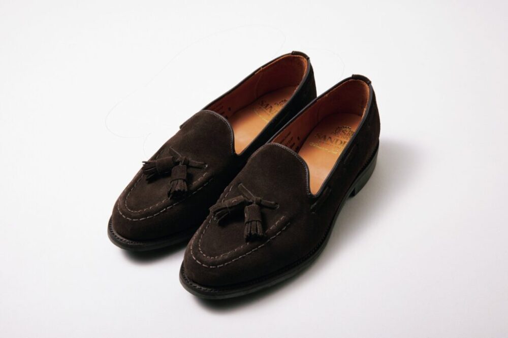 2024年にスタートした「アメリカントラッドコレクション」の1足で、気負わずに履けるカジュアルなタッセルローファー。秘訣はC.F.ステッド製のレペロスウェードアッパーにあり。毛足が短くふっくらと柔らかな手触りで、汚れにも強いため、デイリーユースできるタッセルを探すなら持ってこい(サンダースジャパンTEL:03-6231-0115)