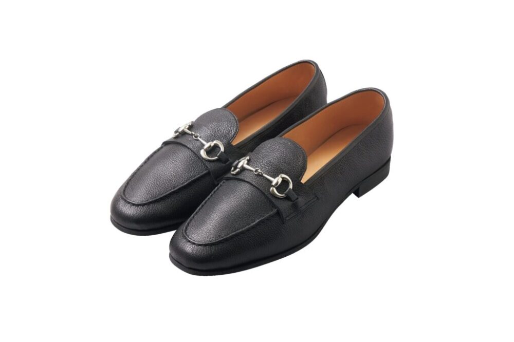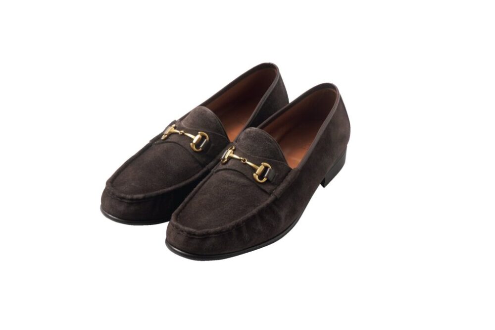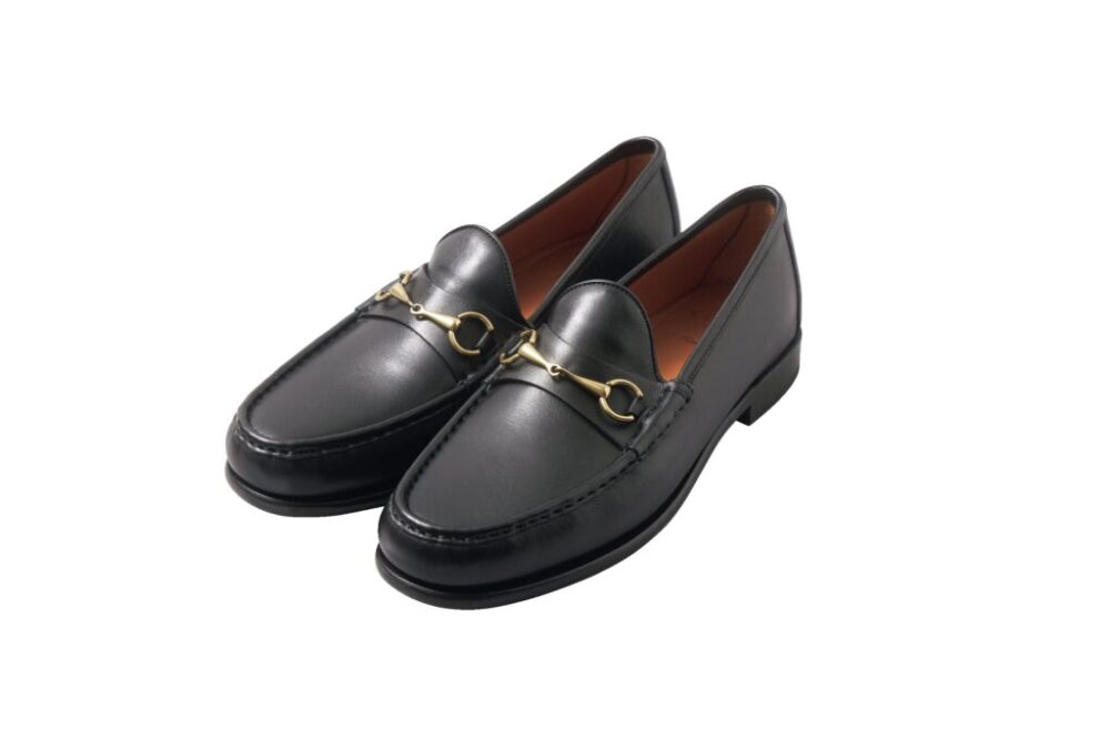 ビットローファーのビットはゴールドが一般的だが、42ndのオリジナルでは珍しいシルバーの美錠があしらわれている。全体的にリラックスした雰囲気で、アッパーはしなやかなゴートシュリンクレザー。そこに輪を掛けたコンフォートを実現すべく、ヒールやつま先に芯を入れず、柔らかな足当たりを追及。トリプルクッション仕様のインソールゆえ足裏のクッショニングも段違いだ。(42nd ロイヤルハイランド 代官山店TEL03-3477-7291)