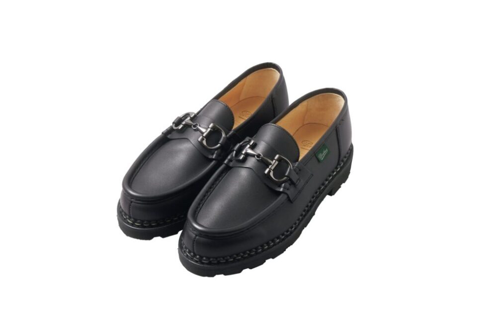 [ランス]同様、ボリューム感が持ち味の名作チロリアンシューズ[ミカエル]をビットローファーにアレンジした[ランス モア]。リスレザーにラグパターンが特徴的なラバーソールを組み合わせたヘビーデューティなランスにマッチさせるべく、大ぶりのビットを採用している。イタリアンビットローファーとはまるで違った表情で魅せる、重厚なアレンジがこれぞパラブーツな1足だ。(パラブーツ青山店TEL03-5766-6688)