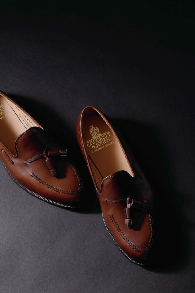 1879年に創業した英国の老舗「クロケット アンド ジョーンズ」の看板モデル。前身となる[キャベンディッシュ]から2度のアップデートを経たこのモデルは、ヒールやアーチ(踵から土踏まずにかけての曲線部分)のフィッティングを従来より狭めることで足に沿うようなフィッティングを実現している。また、主張しすぎないタッセルやシャープなラウンドトゥなどの計算されたバランスはあらゆるスタイルに対応する抜群の汎用性を誇る。12万6500円(グリフィンインターナショナルTEL03-5754-3561)