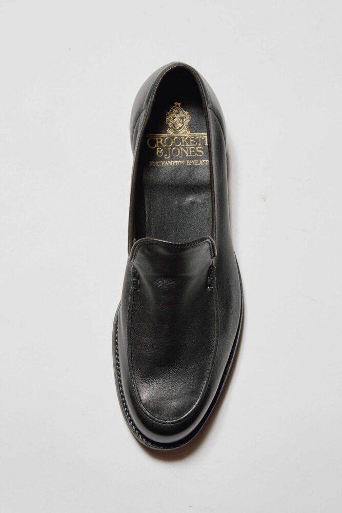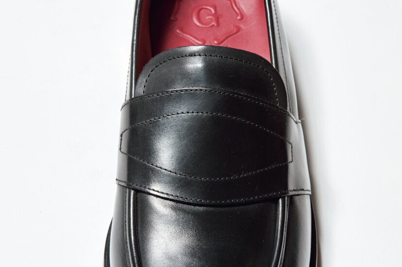 ペニーローファーのスリットに注目。実はスリットの形状も、写真左の半月型と、写真右のかもめ型のようなタイプに大まかに二分される。ここまで判別できれば玄人。