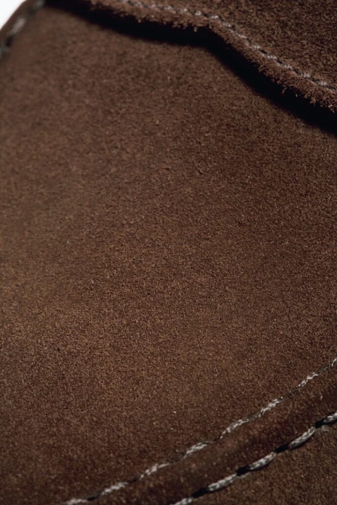 革の表面(スムースレザー)と比べて、グンとカジュアルな印象になる裏革。英国のC.F.ステッド社が老舗のタンナーとして有名。