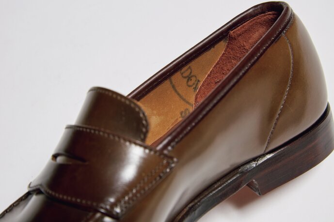 ローファーの欠かせないディテール、モカ縫いの話。甲からトゥにかけて入るU字型ステッチのことだが、いくつかの縫製方法が存在。