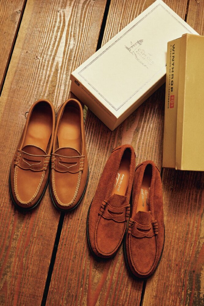 「オールデン」のウィークエンドライン「ケープコッドコレクション」と「インターナショナル シュー カンパニー」の「ウィンスロップ」。どちらも、デッキシューズのように気軽に履けるローファーだ。