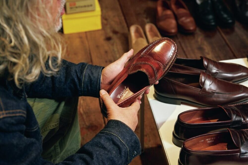 「初めてオールデンを買ったのは、高校1年生の頃やね。嘘やないで。その頃、もう10歳上とかやったら『オールデン』履いてても、まだ分かんねんけど、高校生なんて『オールデン』なんか知らへんやろ。俺だって最初は『アルデン』って読んでたからな。ずっと同じやけど、本当にひねくれ者やから、誰も持ってへんものが良かったんよ。買ったのはローファーやなくて『インディブーツ』やったけどね。