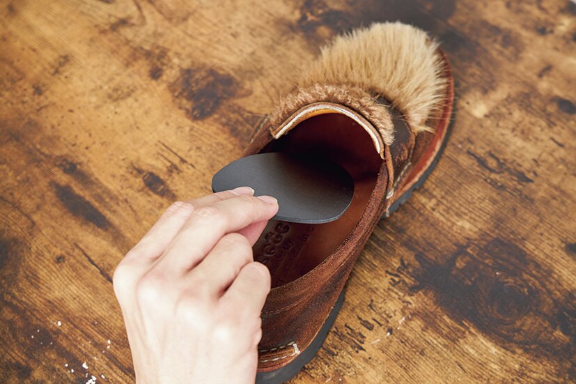 シュータン裏にパッドをつけたら、隙間が埋まり足にフィット。歩く際も靴の中で足が動かなくなった。「ひと手間でこんなに変わるなんて!」