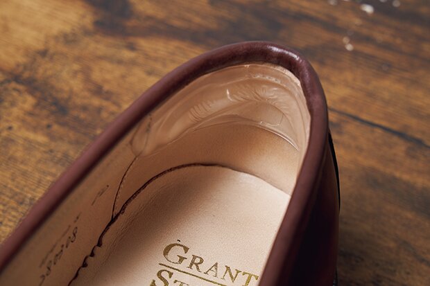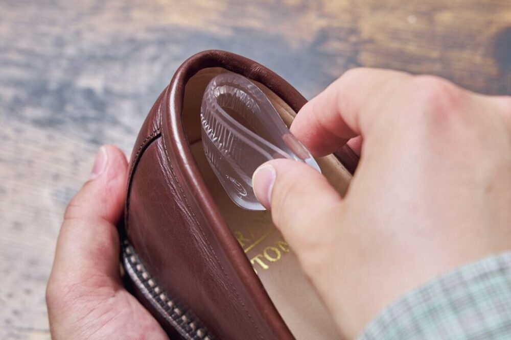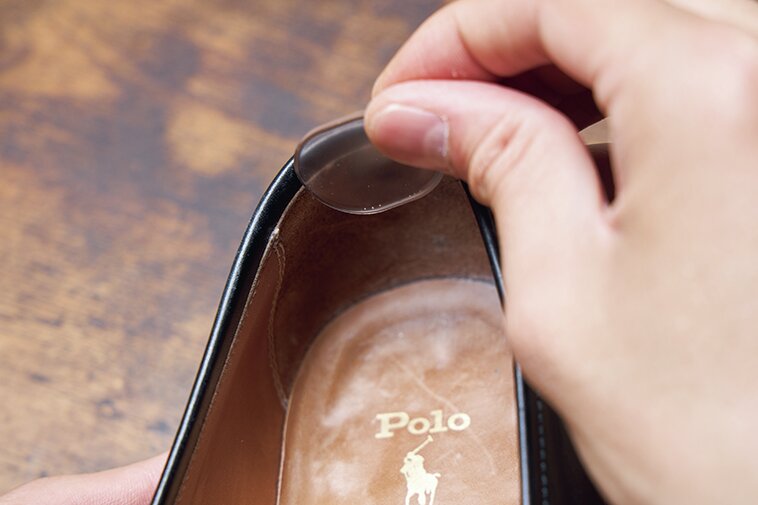 パッドも色々な種類があったのだが、今回は履いていて気にならないように、透明のジェルパッドを選んだ。ローファーのカカト部分の内側に沿わせるように貼っていく。厚みもしっかりあり、調整がうまくいきそうな予感!