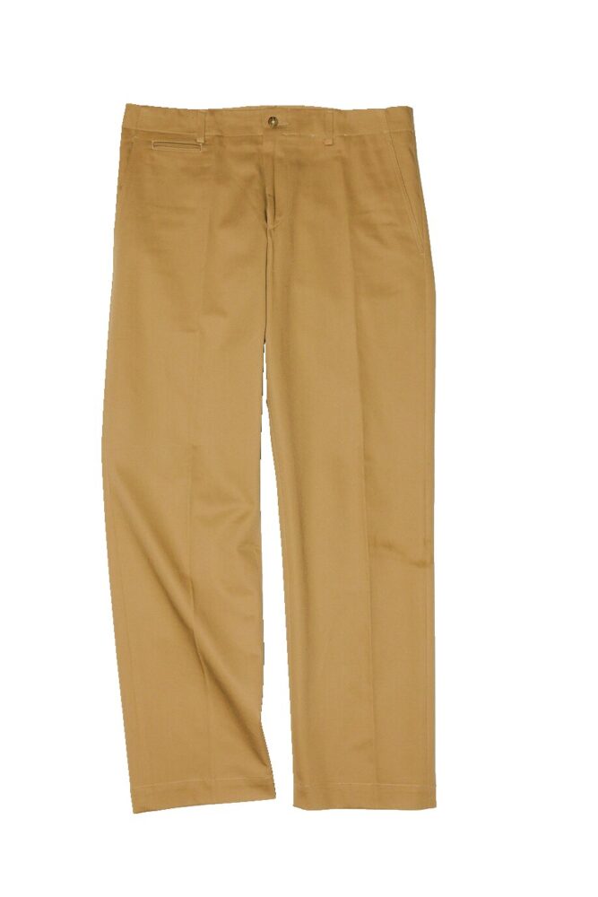 クセのないストレートシルエット、ドレスパンツの製法で丁寧につくられた「ミリタリー」は“最高のチノパン”とも評される名品。80年代後半から90年代初頭に復刻され、近年再復刻された。もちろんメイド・イン・USA。不朽の名作ローファーの「ボストン2」が好相性。2万8600円(トラベルズTEL03-5485-8108)