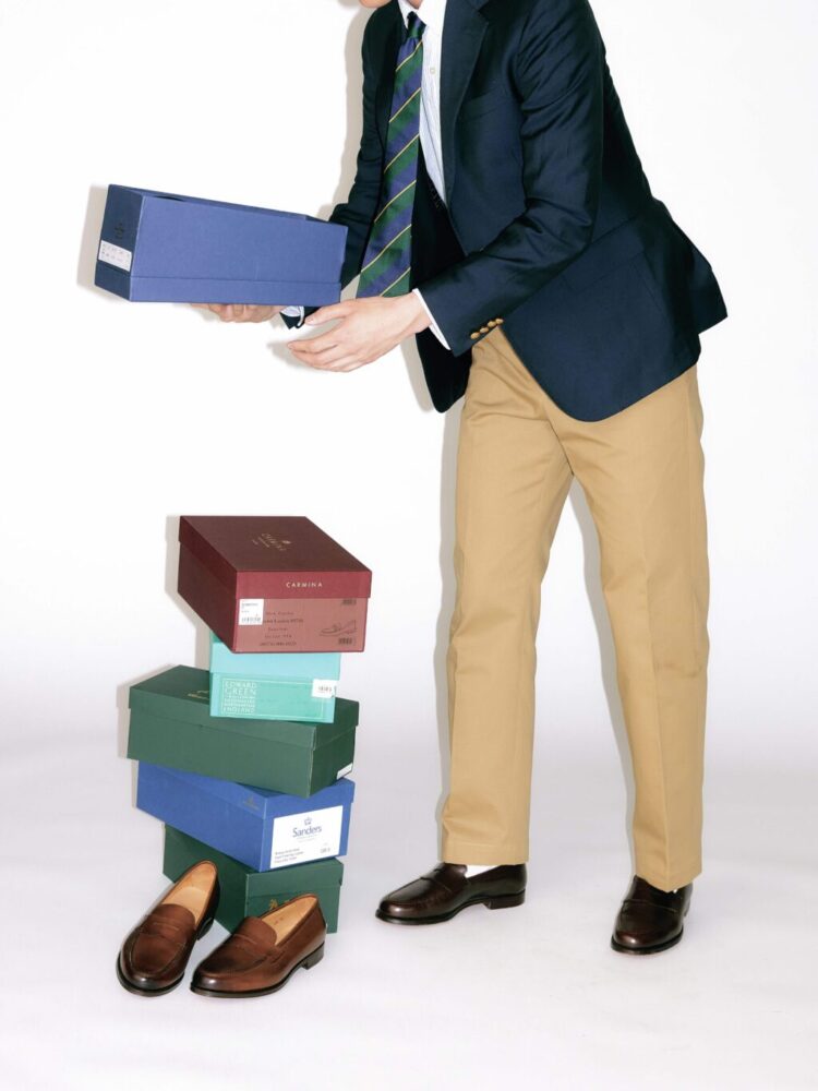 チノパン2万8600円/バリーブリッケン(トラベルズTEL03-5485-8108)、ローファー12万1000円/クロケット アンド ジョーンズ(グリフィンインターナショナルTEL03-5754-3561)