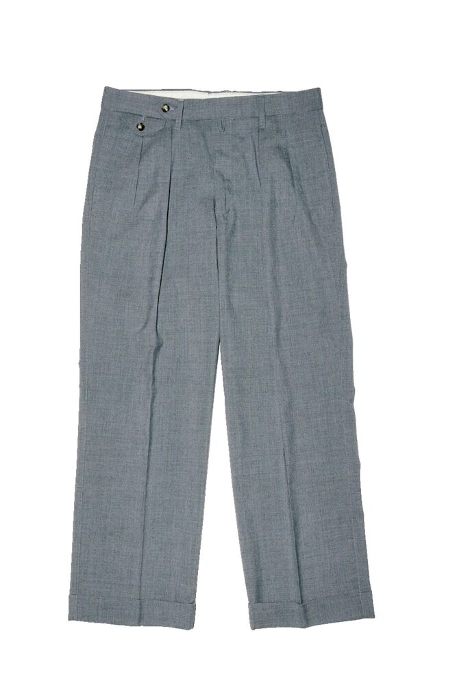 「マッカーサー」は、緩やかなテーパードシルエットやウォッチポケットのディテールが特徴。今季は、一般的なサマーウールよりハリ・コシが強い「ポーラ」素材を使用。日本製トラウザーズを牽引した伝説的ブランドは、アメリカントラッドの雄<オールデン>との親和性も高い。3万5200円(ヘムトPR TEL03-6721-0882)