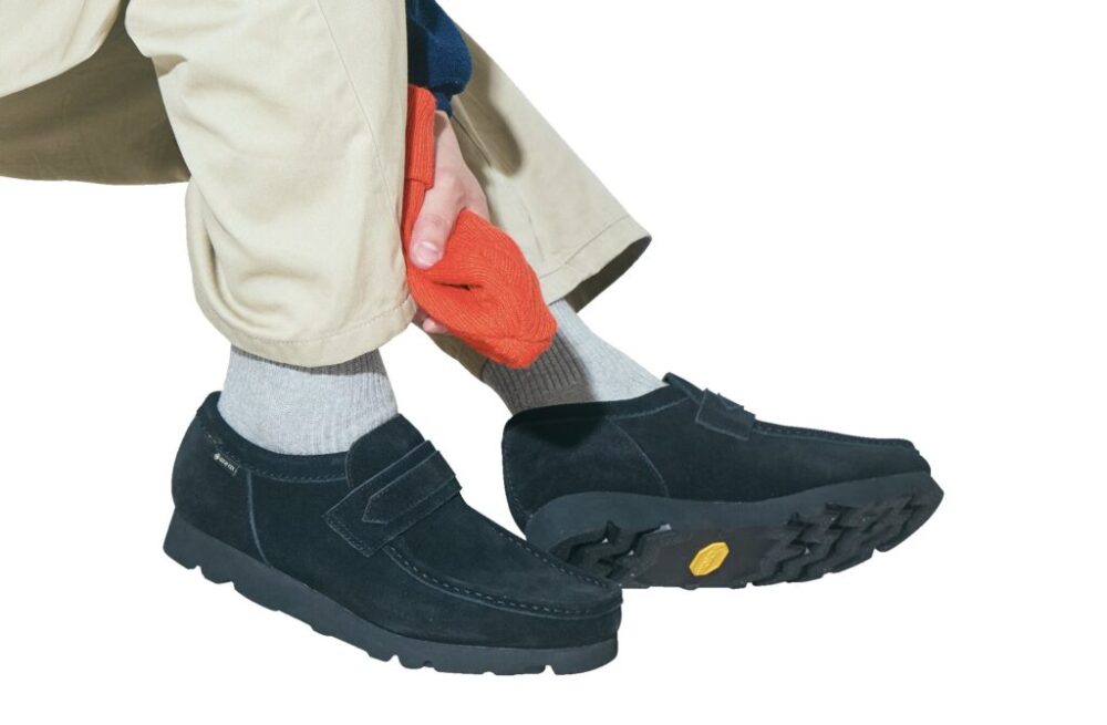 1825年に英国で創業したブランド「クラークス」の名作[ワラビーローファー]。ゴアテックスを搭載したプレミアムスウェードに、高い履き心地と堅牢さを持ち合わせたビブラムソールが魅力。3万4100円(クラークス オリジナルスTEL03-5411-3055)
