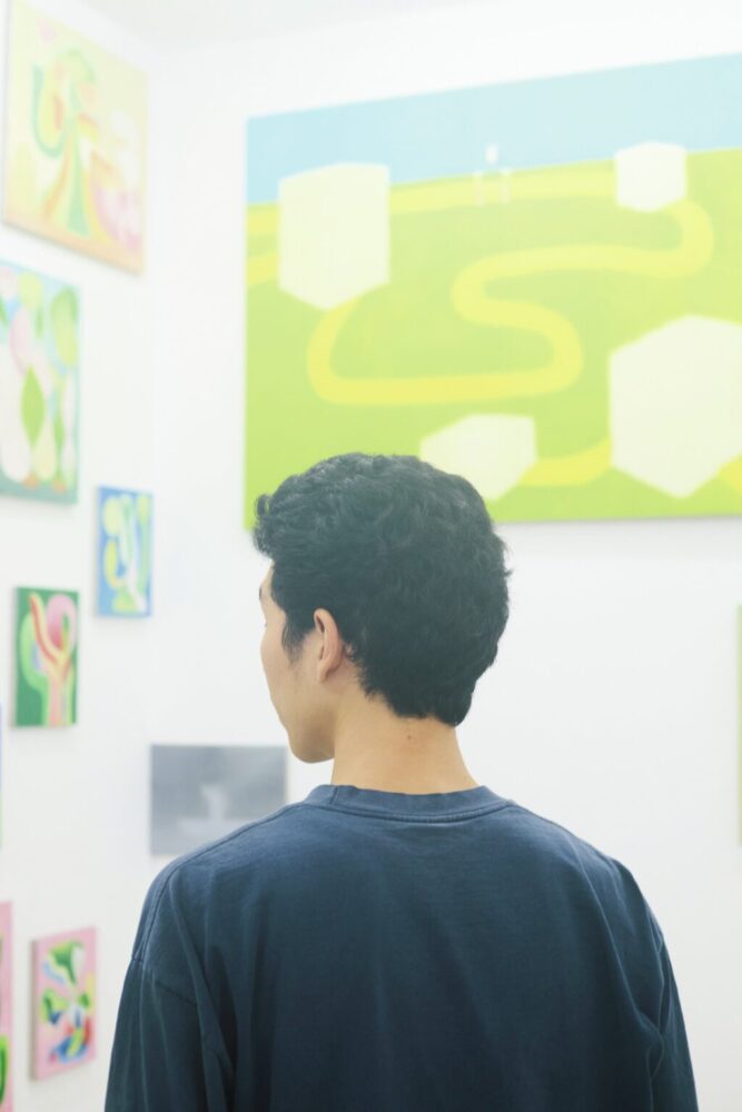 いろいろな感想をいただきました。「気持ちが軽くなった」とか「色使いが楽しい」と言っていただけたことが嬉しかったですね。制作中はネガティブになることもありますが、描き上がるとなんとなく浄化されたような気分になるんです。その感じが伝わったのかなと思っています。アートを見ることや、作品を作ることが、自分にとって楽しいことであり、癒やしなんです。あまり物事を楽しめるタイプではなかったのですが、作品を描いているときは夢中になれました。