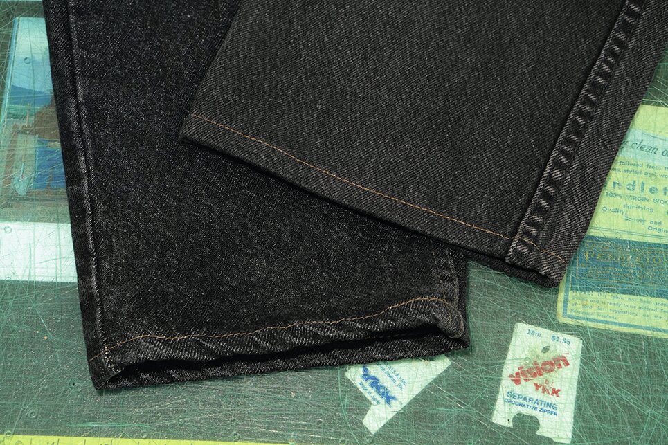 左が今回連載でお直ししたもの、右は裾をねじらずに普通に裾上げをしたもの。差は一目瞭然で、古着好きならば左のお直しをしたいものだ。