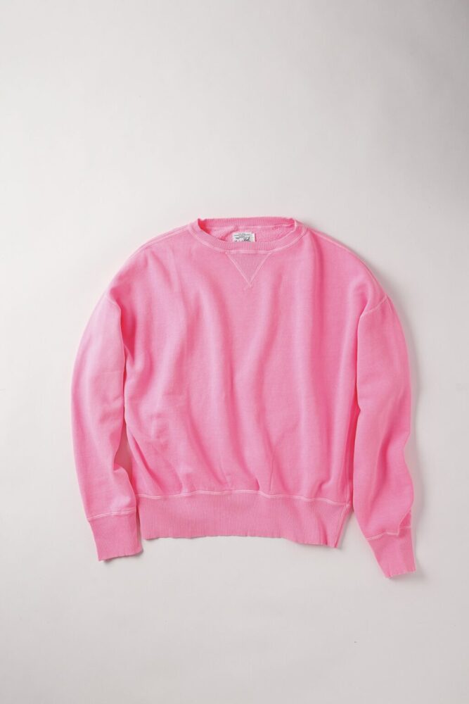 「久々にアメカジな気分の春。真っ先に取り入れたいのがスウェットなんですが、色で遊びたい季節。ヴィンテージ風にフェードしたピンクが絶妙なんですよ。あんまり高価格だとためらいますが、この価格だと……あらがえません。色以外はいたって真面目に50年代らしいボクシーなシルエットや前Vなどのディテールを実現。日本製でこの価格は100点では!? 9,900円(RDH STORE TEL03-5773-1733)」(おすぎ村)