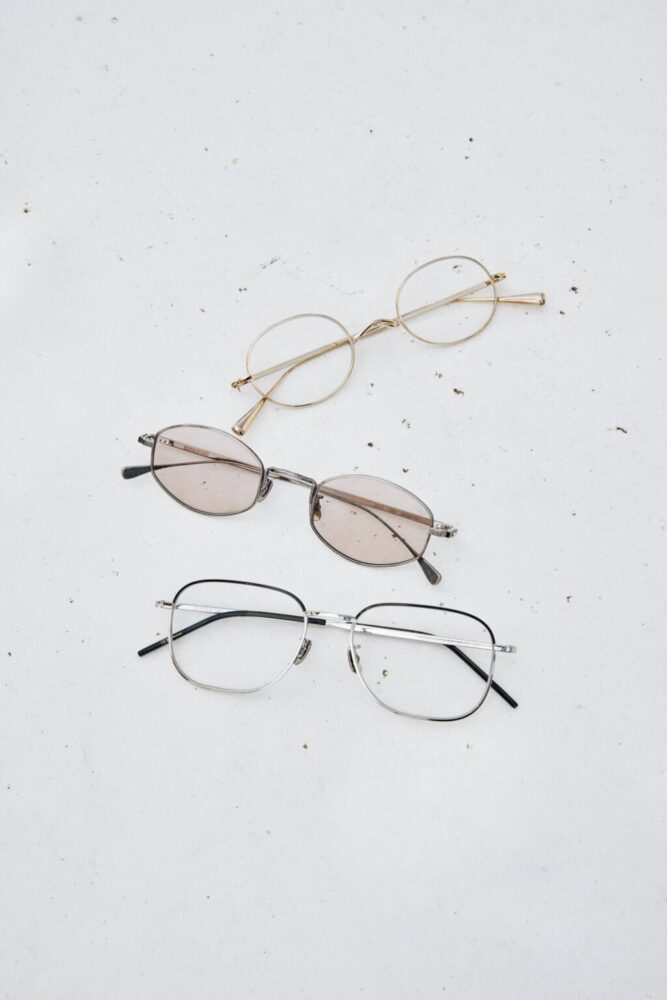 実は半世紀以上前から存在するクラシックな形でありながら、あまり注目されることのなかったシェイプで、オーバルの左右を直線状に断ったまさにバレル(樽)のようなアウトラインが特徴。直線と曲線のバランスが心地よく、どこか凛としたモダニズムも漂う。どのモデルも90年代的だが、作り込みに関してはアイウエアの黄金期とされる50〜60年代ごろのヴィンテージフレームを思わせる精巧さを誇る。