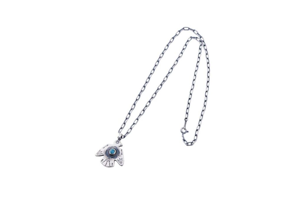 神の象徴サンダーバードを1940年代のヴィンテージスタイルで再現した、シルバー925ネックレス。太めの長あずきチェーン、添えられたターコイズが魅力的。1万7600円