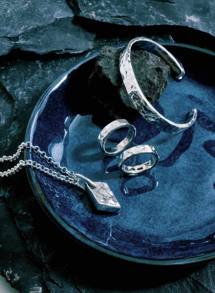 火入れと冷却、そして鍛造という伝統技法によって生まれる「市松」のアクセサリー。一切の型を使わず、ひとつ一つ金鎚で打ち延ばすことで、角が取れ柔らかな丸みを帯び形作っていく。身に着けるほどにその存在感は深まり、手仕事の温もりが日々を彩りながら、あなたの物語にそっと寄り添ってくれる。