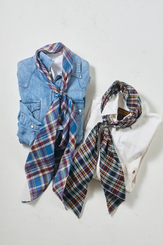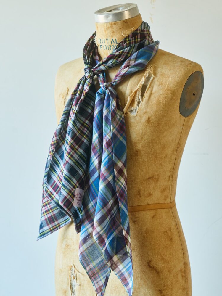 アメリカントラッドの代表的な素材&柄であるマドラスチェック。過去には2nd別注アイテムとして様々な配色のシャツを製作してきましたが、今回はそのシャツ生地を使用してスカーフを作りました!