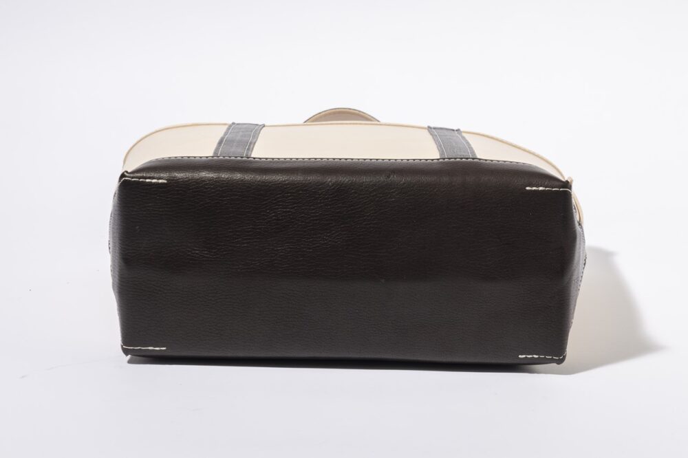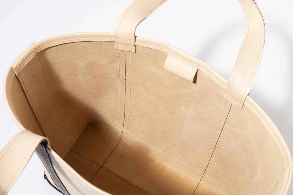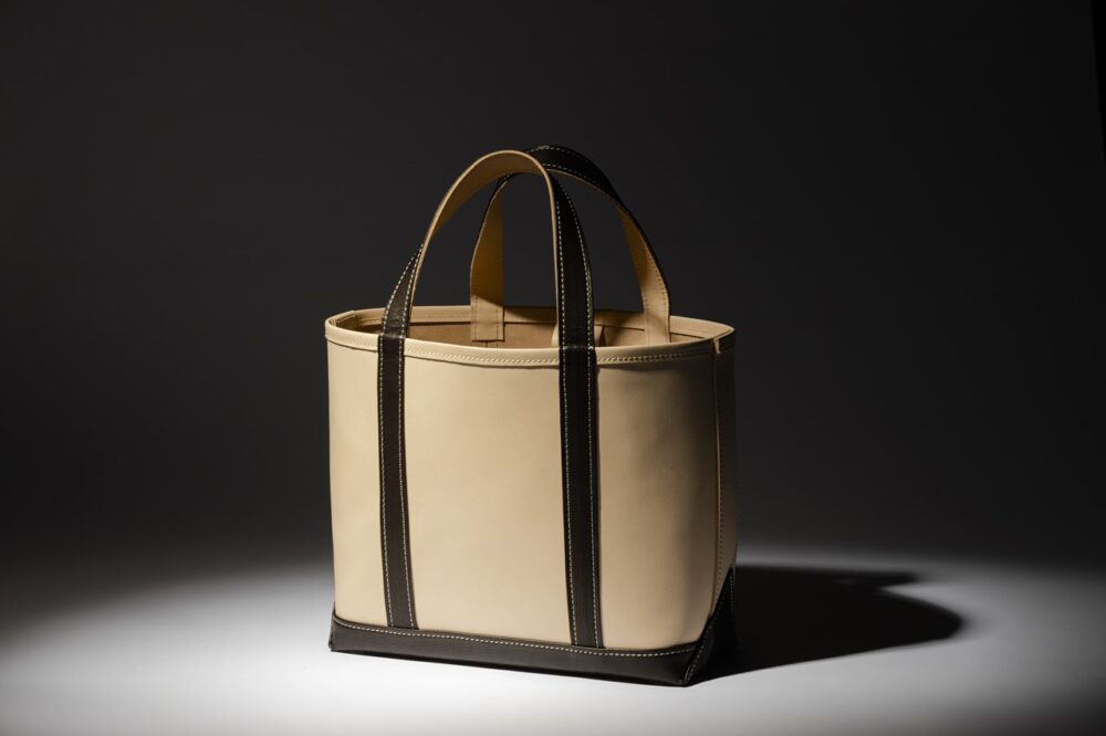 何万通りの組み合わせから悩みに悩んだ配色や皮の種類。数回にわたってサンプルを試作した結果、美しいエイジングが期待できるやや厚めのヌメ革をボディーに、ハンドル部分は柔らかな黒のシボ革を採用。オーソドックスでコーディネイトを選ばないクラシックなデザイン、かつ使うごとに味わい深い飴色へと経年変化するクラシックなトートレザートートバッグが完成した。柔らかくなって使いやすくなるのが今から楽しみだが、それ以上にボディーは色の変化が著しいと予想される。飴色のツヤを放つまでに育てたい。必要なのは持ち手の愛情のみ。