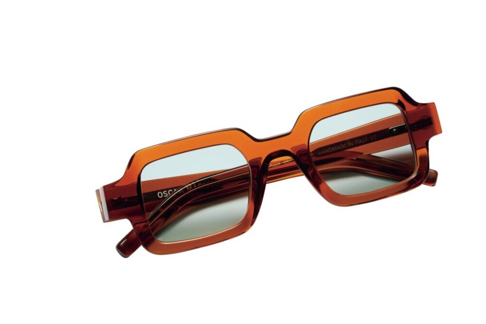 イタリアにてハンドメイドで作られる「オスカー マグヌソン」。ナード感満載のドイツ的スクエアに、角の立ったフロント両端の智と、先に向かって細くなるテンプルがユニーク。6万4900円(ブリンク ベースTEL03-3401-2835)